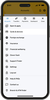 Log in to the ASB Mobile Banking app and tap ‘More’ in the bottom right-hand corner (the three little dots). Then click ‘Cards & devices’.