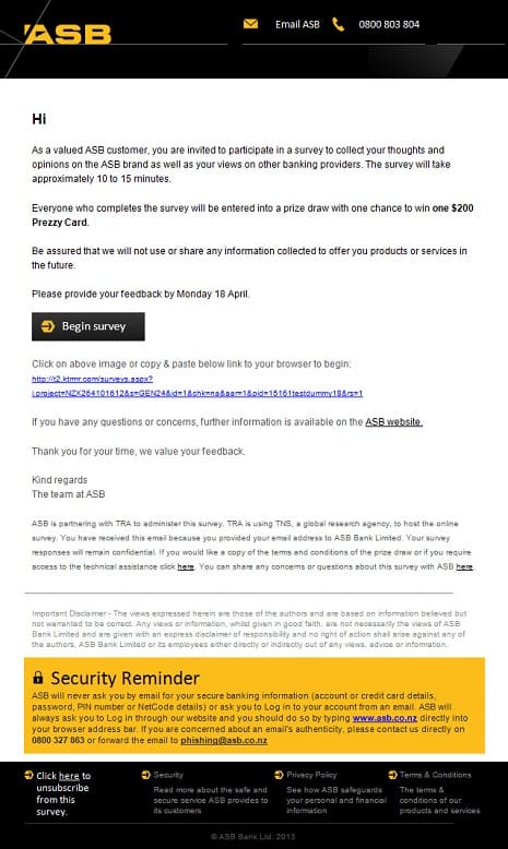 We will never ask our customers for any personal account details, including access codes and passwords, in these surveys. If you are unsure or have any further questions about a survey invitation you can contact us.
