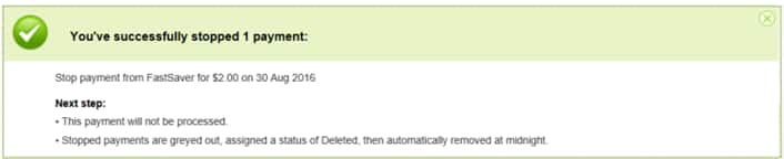 5. Once confirmed you will see a success message and future dated bulk payments for the selected payment will now be stopped