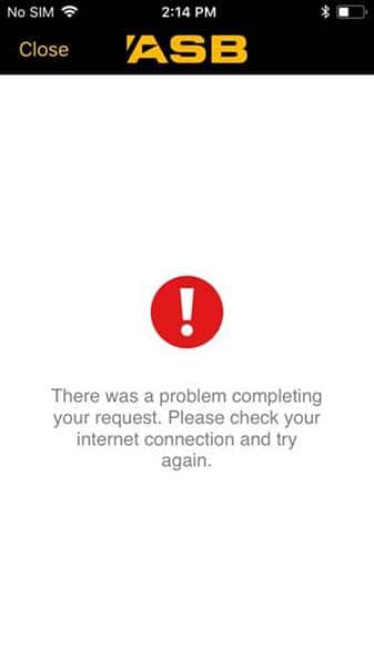 Why do I see the error “There was a problem completing your request. Please check your internet connection and try again” when I want to view a document in the ASB Mobile app?