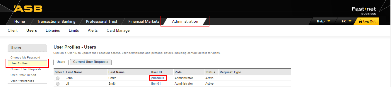 - Go into the Administration section of FastNet Business