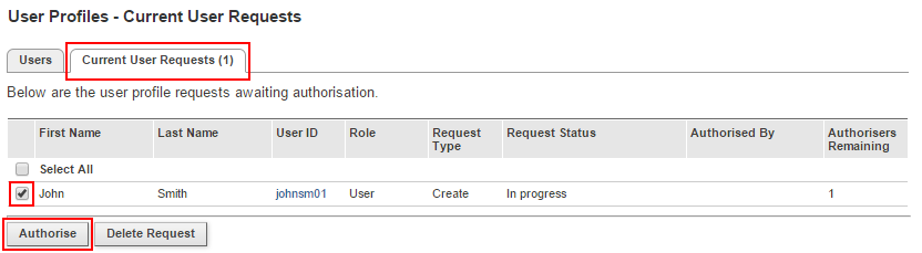 - Click on Current User Request