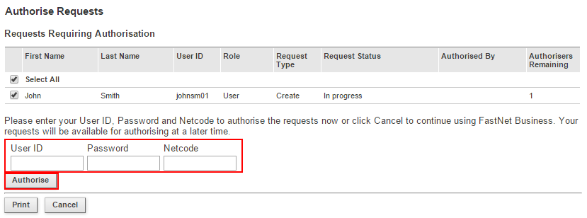 At this stage you will need to authorise the above changes.