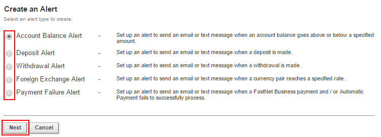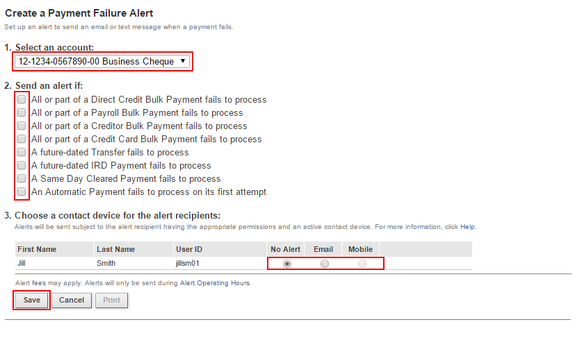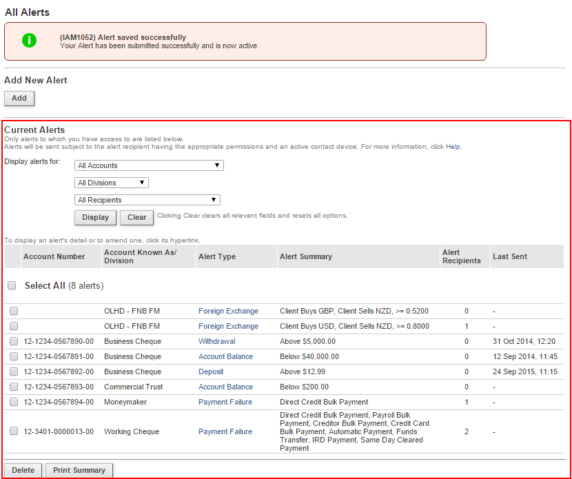 If you need further assistance setting up your alerts, please phone the FastNet Business Helpdesk on 0800 225 527 Monday to Friday 8.00am-6.30pm.