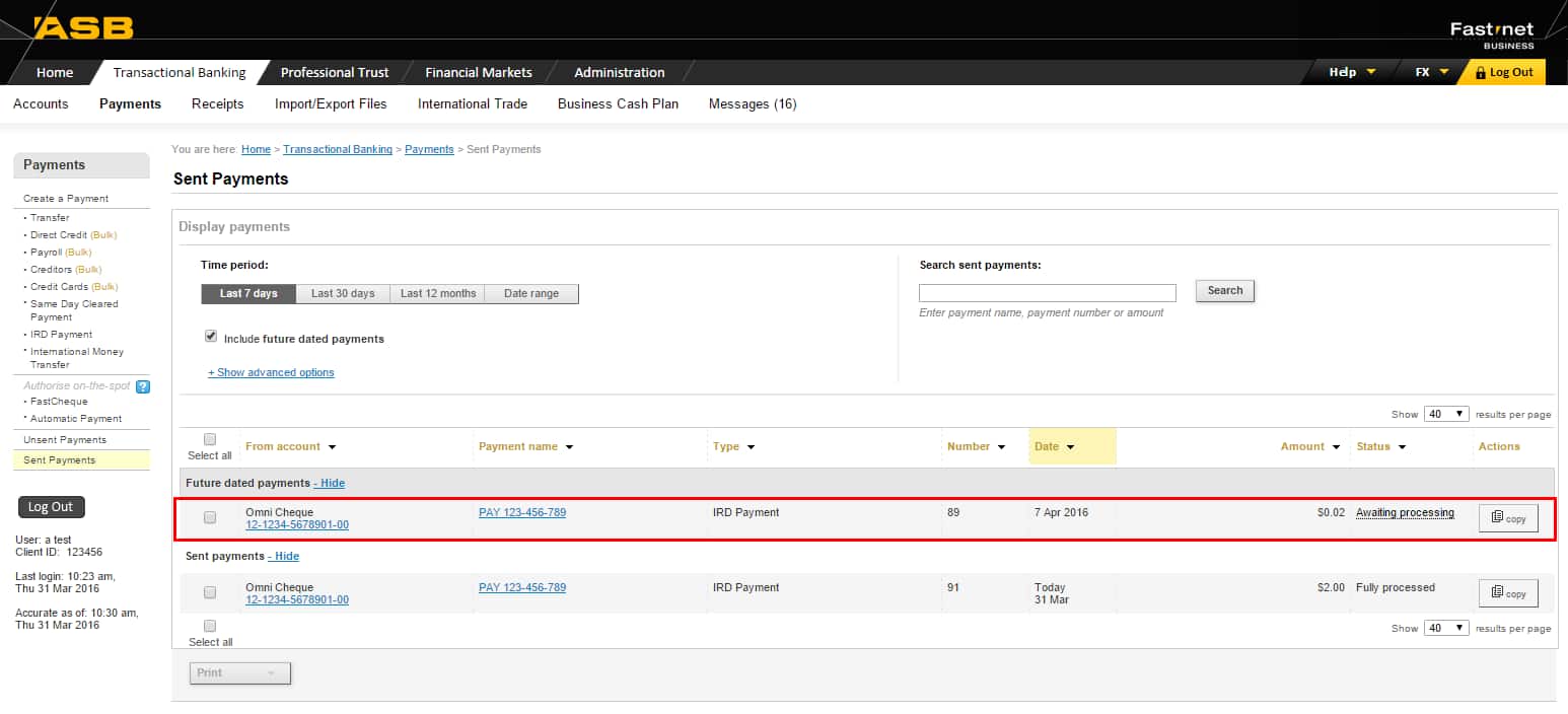 *Release Update 12th April 2016 – Administrators will have two new permissions, Copy and Send, to help control what users can do with IRD Payments. Existing users who have the Create permission have been automatically granted the new Copy permissions. Existing users who have the Authorise permission have been automatically granted the new Send permission. Administrators can update these permissions in User Profiles.